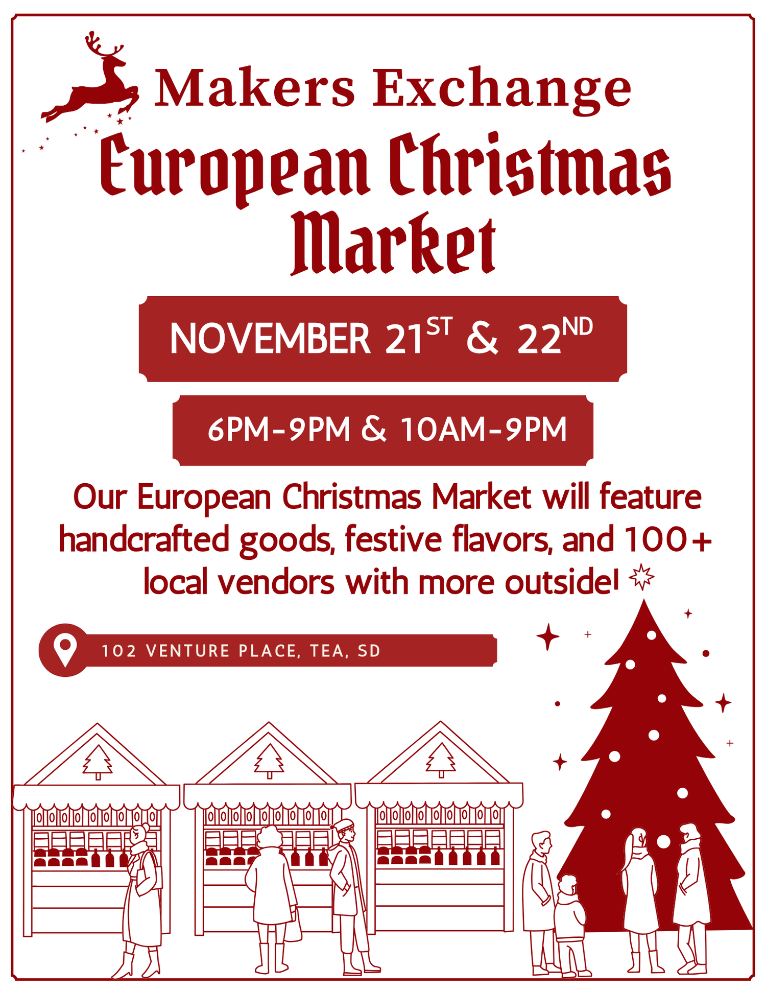 Step into the magic of the season at our European Christmas Market! Wander through outdoor vendor booths filled with unique gifts and handcrafted treasures, savor festive food and drinks, and enjoy holiday entertainment for all ages. With twinkling lights, cozy seasonal flavors, and the charm of a traditional Christkindl Market, it’s the perfect way to celebrate the holidays. The Christmas Market will make your season merry and bright!